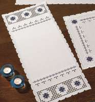 Hardanger Tischläufer 29x71cm - weiß mit blau