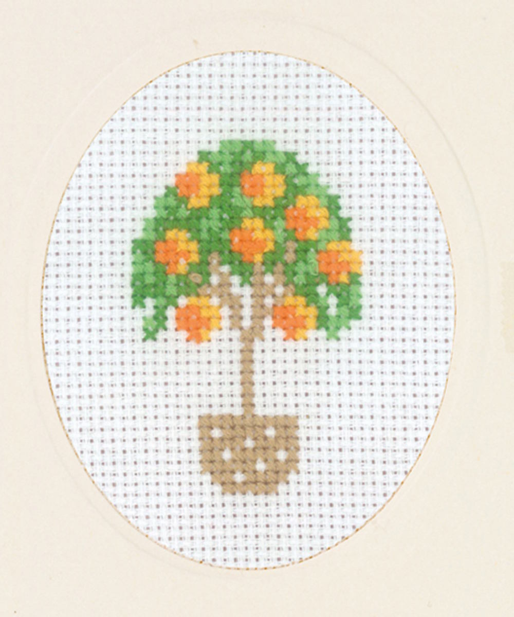 Kreuzstichkarte 8x13cm - Orangenbaum