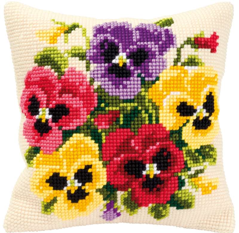 Kreuzstichkissen 40x40cm - Blumenstrauß Stiefmütterchen