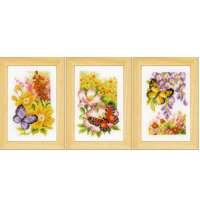 Kreuzstichpackung 8x12cm - 3-er Set Blumen und Schmetterlinge
