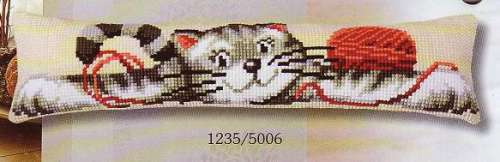 Kreuzstich-Zugluftstopper 80x20cm - Katze